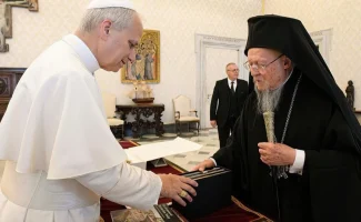 On the anniversary of the Council of Nicaea, the two Christian leaders pledged to unify their churches while warning world leaders to halt the spread of war and care for the environment.