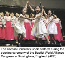 Birmingham, England (ABP) — An estimated 12,000 Baptist Christians from around the world celebrated a century of togetherness July 27, opening their five-day meeting in Birmingham, England, with vibrant music, vivid pageantry and stirring stories of faith.