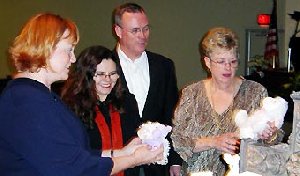 Examining the stuffed animals donated to the Love Lamb Prayer Ministry of the Baylor Health Care System chaplains’ program by member of South Garland Baptist Church on Palm Sunday are (left to right) Karen Black, head chaplain at Baylor Regional Medical Center at Grapevine and originator of the Love Lamb Prayer Ministry; Ines Lowe, chaplain at Baylor-Garland; Jerald Garner, music minister at South Garland Baptist and chaplaincy resident at Baylor-Grapevine; and Pam Woodberry, vice chair of the missions/evangelism committee at South Garland Baptist. (PHOTOS/Ken Camp)
