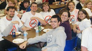 On Thursday of that third week, BCM members wore white t-shirts emblazoned with the “No Judging” symbol. That night an outdoor rally was held with two worship bands and a speaker, which was followed by a free dinner at the BCM building.