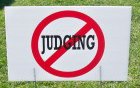 Small signs with the word “judging” inside a red circle slashed with a diagonal line – the universal symbol that something is prohibited – sprouted in grassy spots across campus. They were the first stage of the BCM’s three-week “No Judging” project.