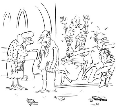“Fess up. Did you put an ‘energy drink’ in the communion cups again?”