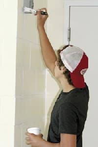 Cory Hardee from Jackson, Tenn., helps paint the first floor of the Burt Administration Building on the campus of Hannibal-LaGrange College during a week spent in Hannibal for World Changers.