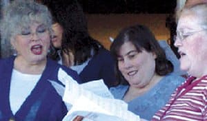 From left, Jeanie McGowan, Sindy Puckett and Tanya McMillan participate in a house-blessing service for the home McGowan and her husband, Keith, bought and renovated on Jefferson City's near east side.