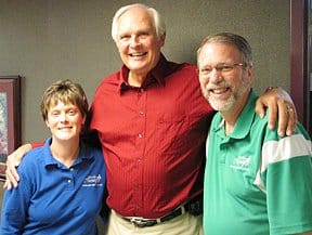 Tricia Alberts (left), new Sports Crusaders edecutive director, poses with former executive directors Bobby Shows (center), who founded the ministry, and Randy Curless. (Photo by Ken Satterfield)