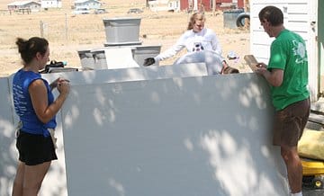 Lydia Pratt (left), Abby Pratt and Blane Baker — all members of Second Baptist Church, Liberty — prepare sheet rock for hanging at a renovation project in Bridger, S.D. The trio worked in the community with Together for Hope West, part of the national Cooperative Baptist Fellowship's Together for Hope Rural Poverty Initiative. Begun in 1991, the 20-year partnership effort targets the 20 poorest counties in the United States.