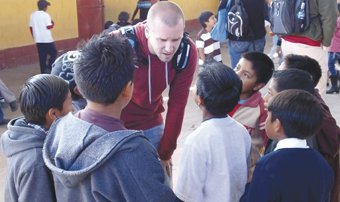 Jeff Arnold, student minister at First Baptist Church in Lee's Summit, visits with children while on a mission trip to Guatemala. First Baptist concentrates on assisting local congregations to minister to their communities. (FBC, Lee's Summit, photo)
