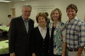 CBF Executive Coordinator Daniel Vestal with his wife, Earlene; daughter, Anne Vestal England; and son-in-law, Jordan England, announce his decision to retire from CBF at the Advisory Council meeting at First Baptist Church, Decatur, Ga., Sept. 9. Photo by Lance Wallace