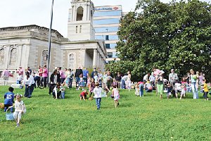 First Baptist Church in Knoxville, Tenn., perched on a downtown hill above the Tennessee River and at its current location since 1924, hosted that city\\\'s only downtown Easter egg hunt on March 31. (PHOTO/Courtesy of First Baptist Church, Knoxville)