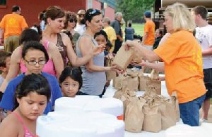 Members of First Baptist Church in Oklahoma City distribute food as part of its ministry to the downtown community. (PHOTO/Courtesy of First Baptist Church, Oklahoma City)
