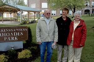 One of the events of the day at Ironton was the dedication of the late Kenny and Verna Rhoades Park on the Arcadia Valley campus. Verna (right), poses with Ironton campus administrator Sherri Snider and Kenny’s auction partner and brother-in-law Don Akers (left). The two men were fixtures for the annual auction on campus that benefited the ministry.