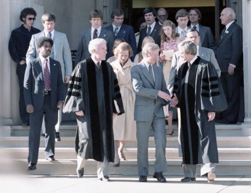 The memorial service included scriptures and songs that called back to Carter’s pre-inaugural service at First Baptist, such as readings from Isaiah 43:16-21 and Romans 12:9-21 as well as renditions of “Our God, Our Help in Ages Past” and Carter’s favorite hymn, “Amazing Grace.” The service also featured the President’s own voice in the form of a recording from his final Sunday School lesson taught on Jan. 4, 1981, just 16 days before his final day as president.