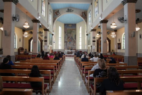 On a recent Sunday, families flocked to Mass at the church, where a Vatican and a Palestinian flag flank the altar, and a tall mosaic illustrates Jesus’ arrival in the village, then called Ephraim.