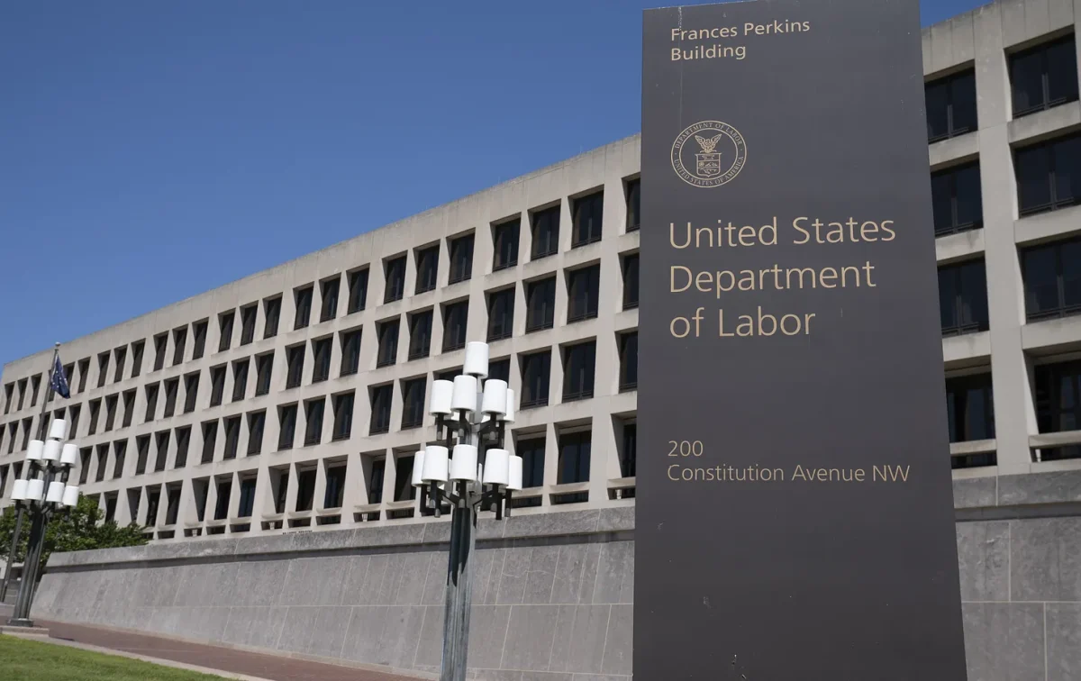 The entrance to the U.S. Department of Labor is seen near the Capitol in Washington, D.C., on May 7, 2020. (J. Scott Applewhite/Associated Press)