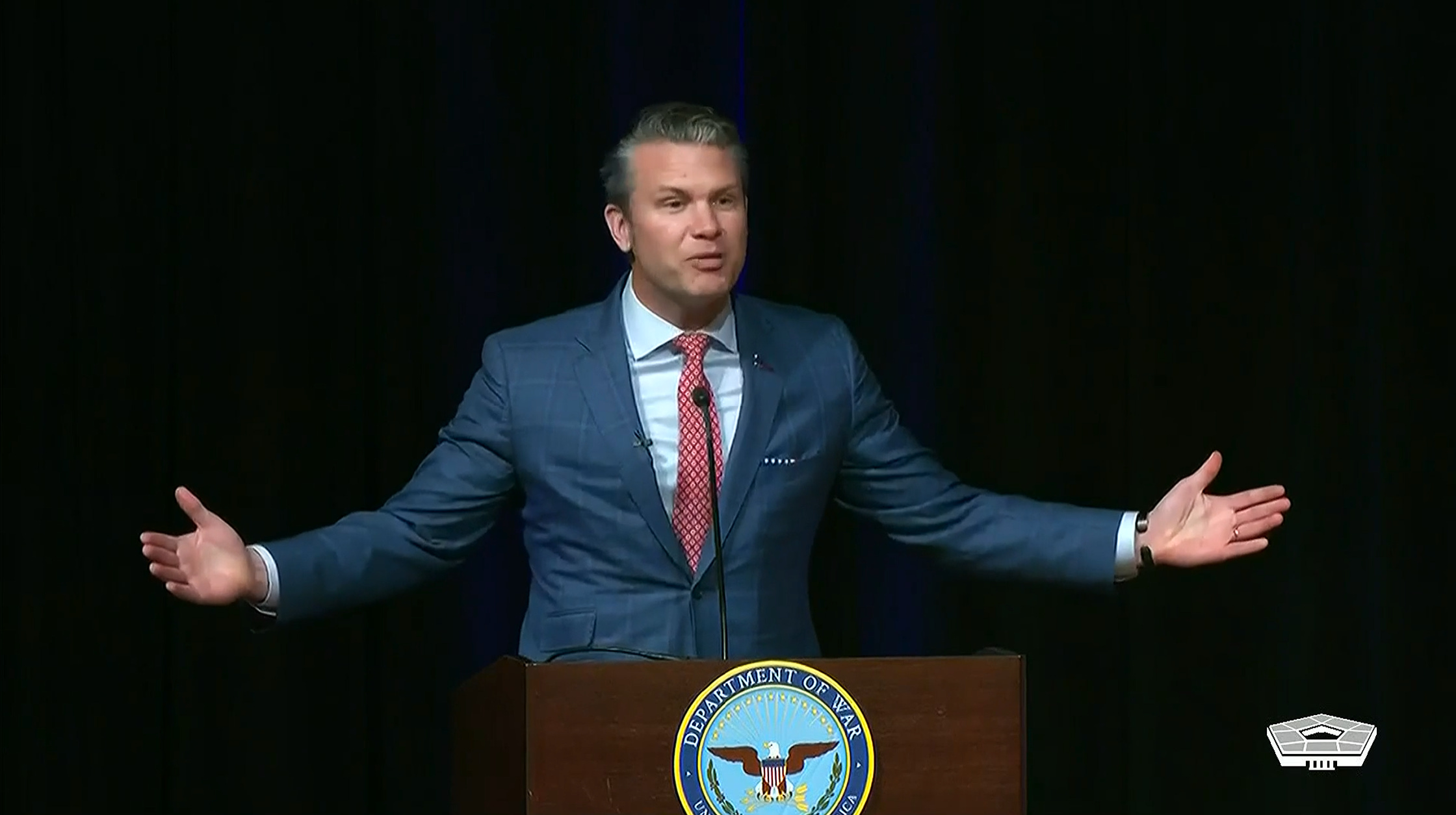 Screengrab of Pete Hegseth speaking during a Nov. 19, 2025, prayer service at the Pentagon.