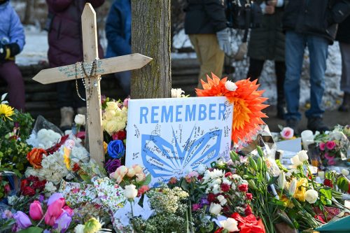 A makeshift memorial at the site where Renee Nicole Good was shot and killed by an ICE officer in Minneapolis, Minnesota, as seen on Jan. 9, 2026. (Craig Lassig/UPIAlamy Live News)