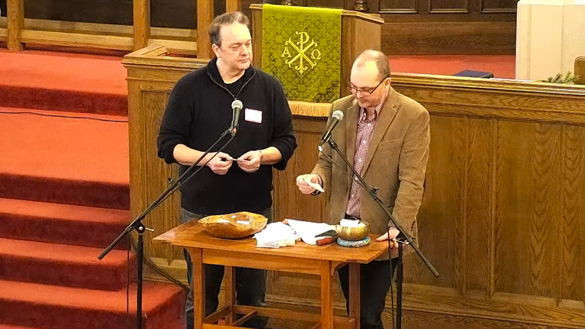 Screengrab as Rev. Christian Collins Winn (left) and Rev. Travis Norvell read prayers people wrote down during a joint worship service on Jan. 25, 2025, in Minneapolis, Minnesota.