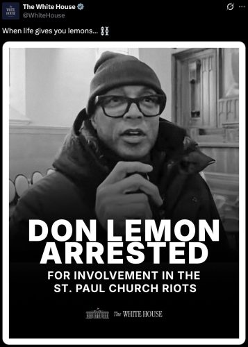 The official White House account on X (formerly Twitter) brags about the arrest of Don Lemon using a chains emoji