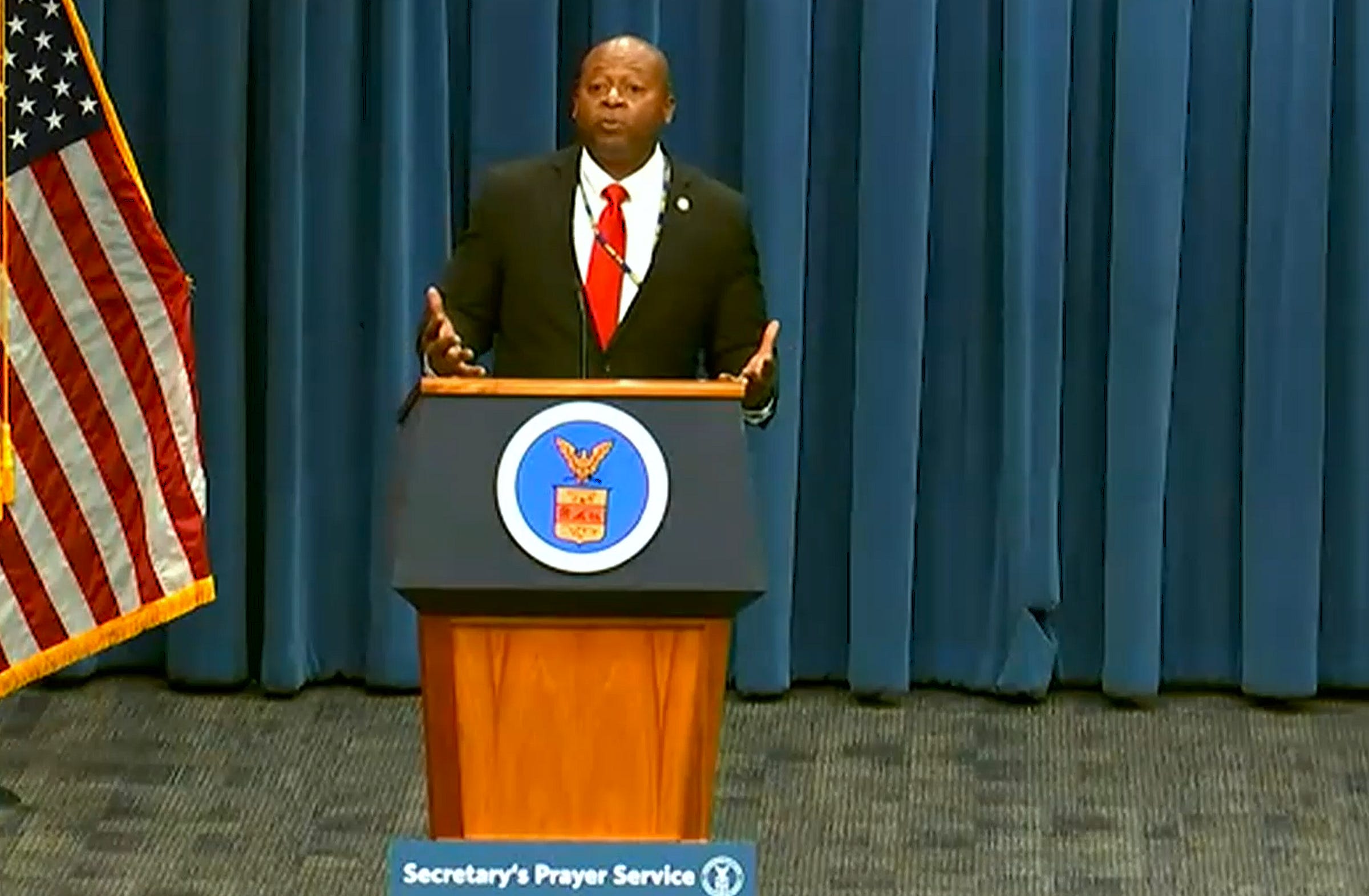 Screengrab as Leon Benjamin preaches during a Department of Labor worship service in Washington, D.C., on Feb. 11, 2026.