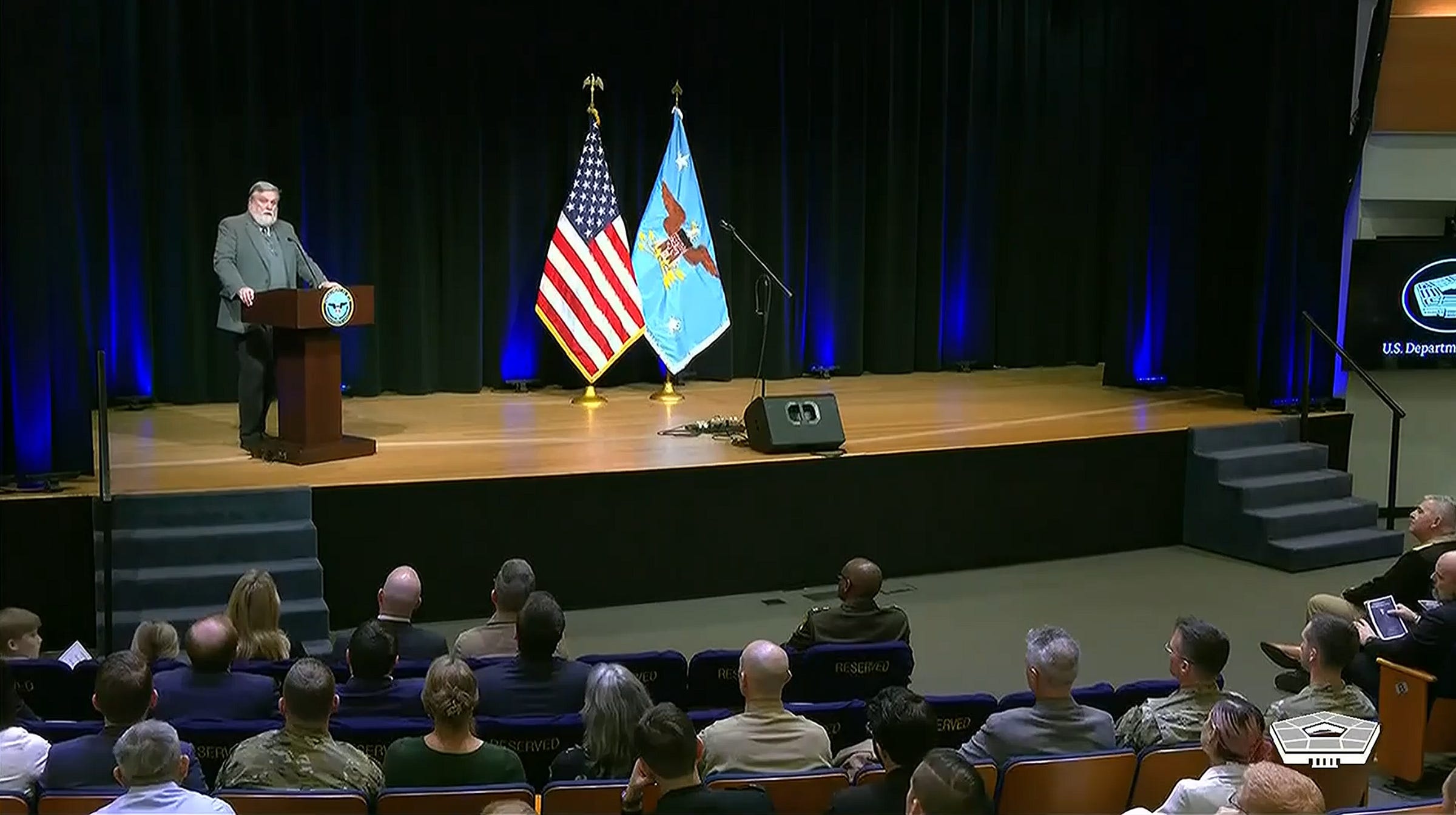 Screengrab as Doug Wilson preaches during a worship service at the Pentagon on Feb. 17, 2026.