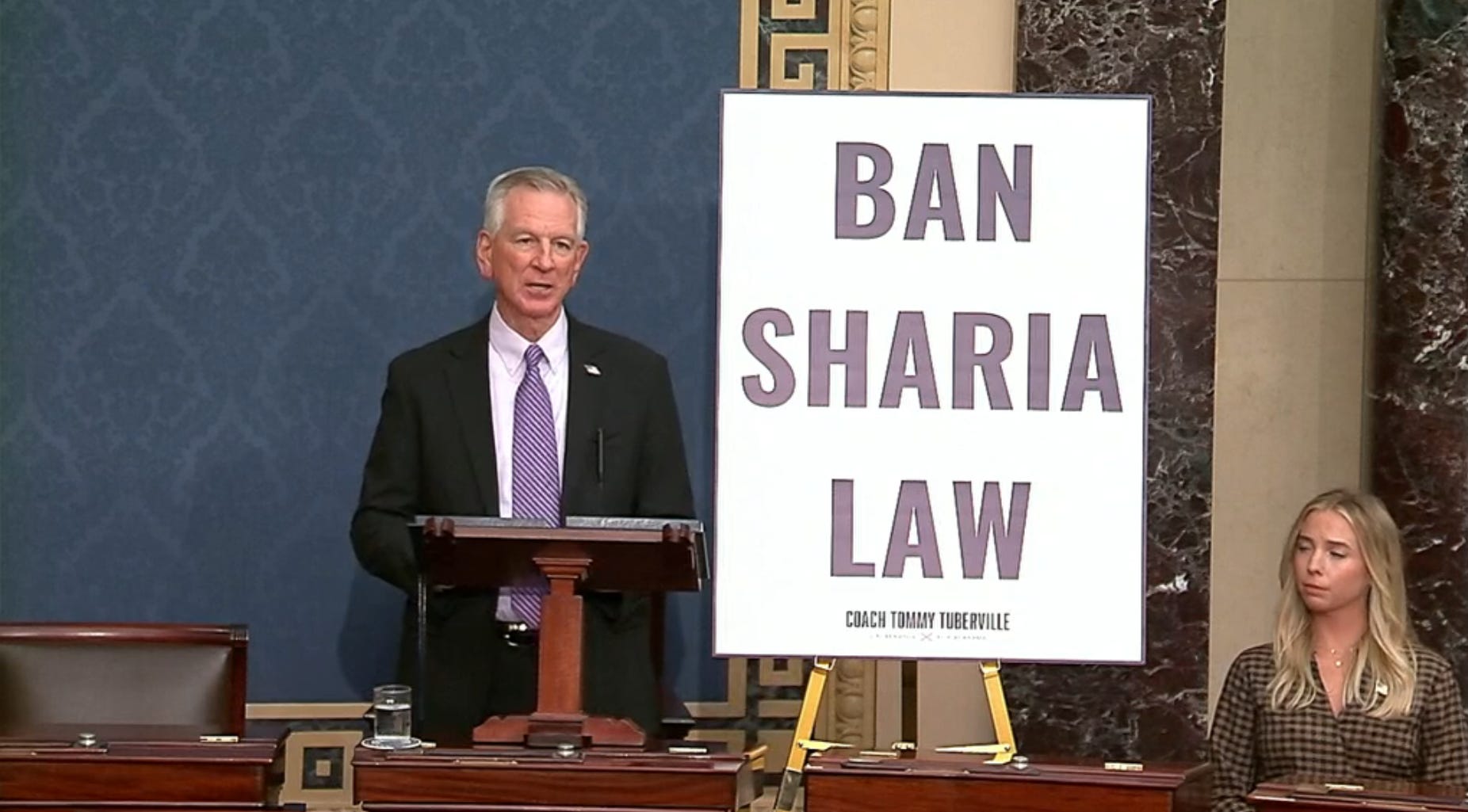 Screengrab as Sen. Tommy Tuberville speaks against Sharia law on the floor of the U.S. Senate on Oct. 8, 2025.