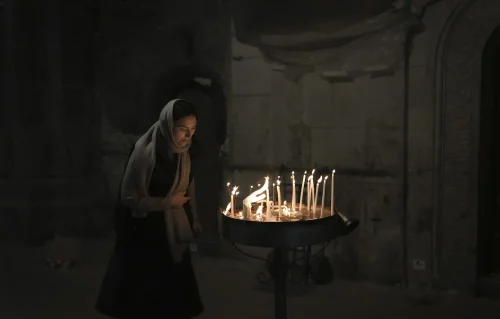 FILE: A woman lights candles on Jan. 28, 2025, at the Church of the Holy Sepulchre, where many Christians believe Jesus was buried and rose from the dead, in the Old City of Jerusalem. (Mahmoud Illean/Associated Press)