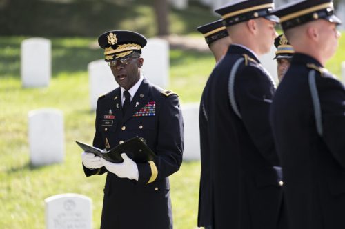 U.S. Army Chief of Chaplains Maj. Gen. William Green, Jr. gives remarks during a memorial service at Arlington National Cemetery, Arlington, Virginia, Sept. 4, 2024. (U.S. Army photo by Elizabeth Fraser/Arlington National Cemetery/Public Domain)