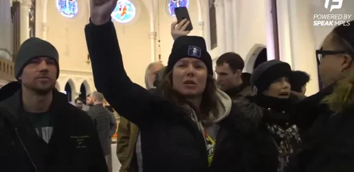 ‘Jesus — who they claim to worship — went into the so-called houses of God, he flipped over tables. … So that’s what we did today,’ said minister and organizer Nekima Levy Armstrong.