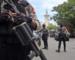 Two attackers blew themselves up outside a packed Roman Catholic cathedral during a Palm Sunday Mass on Indonesia’s Sulawesi island, wounding at least 20 people, police said.