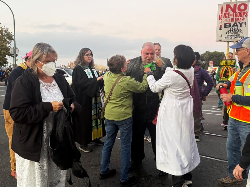 For the second time in six weeks, a pastor was struck in the head with a pepper round fired by a US immigration agent as faith leaders protested the arrival of more than 100 US Customs and Border Patrol agents.