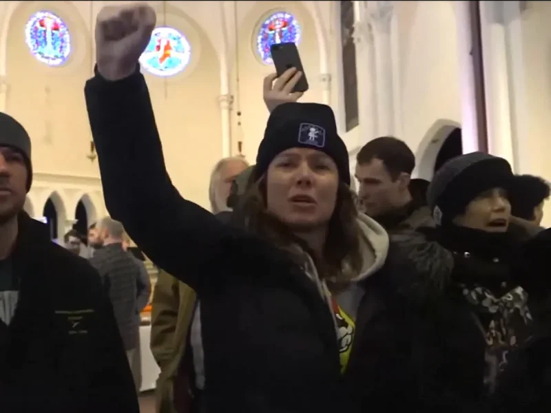 ‘Jesus — who they claim to worship — went into the so-called houses of God, he flipped over tables. … So that’s what we did today,’ said minister and organizer Nekima Levy Armstrong.