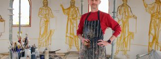 Vladimir Grygorenko is decorating the dome of a North Texas Christian Orthodox Church with an iconic representation of the ascension of Christ.