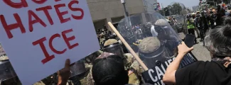 At one demonstration, faith leaders spread out in front of the line of officers, held hands, and occasionally burst into song.
