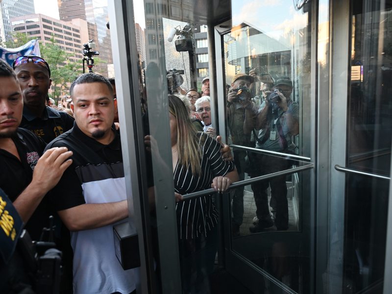 ‘God is with us, and God will never leave us,’ Abrego told the crowd. ‘God will bring justice to all of the injustice that we are suffering.’